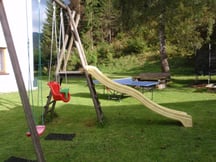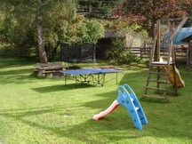 Die Kinder können sich mit Schaukel , Rutsche, Trampolin und Tischtennis vergnügen.